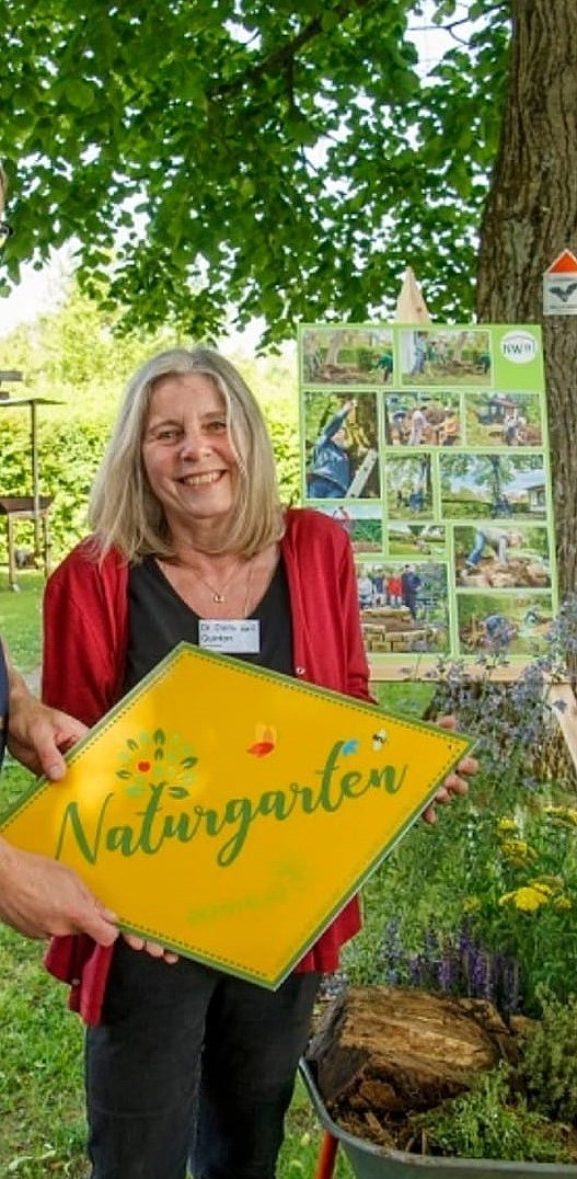 Dank der fachlichen Beratung von Dr. Doris Quinten konnte NW 18 bereits im Mai die Plakette in Gold im Rahmen von "Bayern blüht - Naturgarten" erlangen. Dr. Doris Quinten ist unter anderem Leiterin des ÖDP-Arbeitskreises Tierschutz und passionierte Gärtnerin.