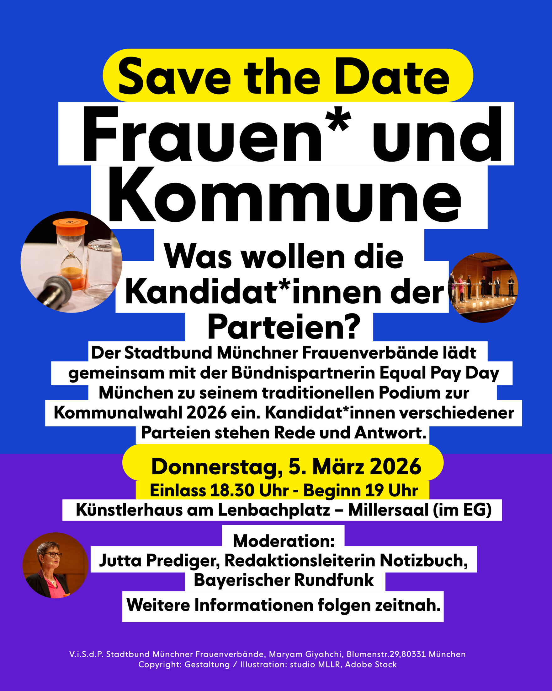 Dieser Frage widmet sich das traditionelle Podium des Stadtbundes Münchner Frauenverbände in Kooperation mit der Bündnispartnerin Equal Pay Day München.