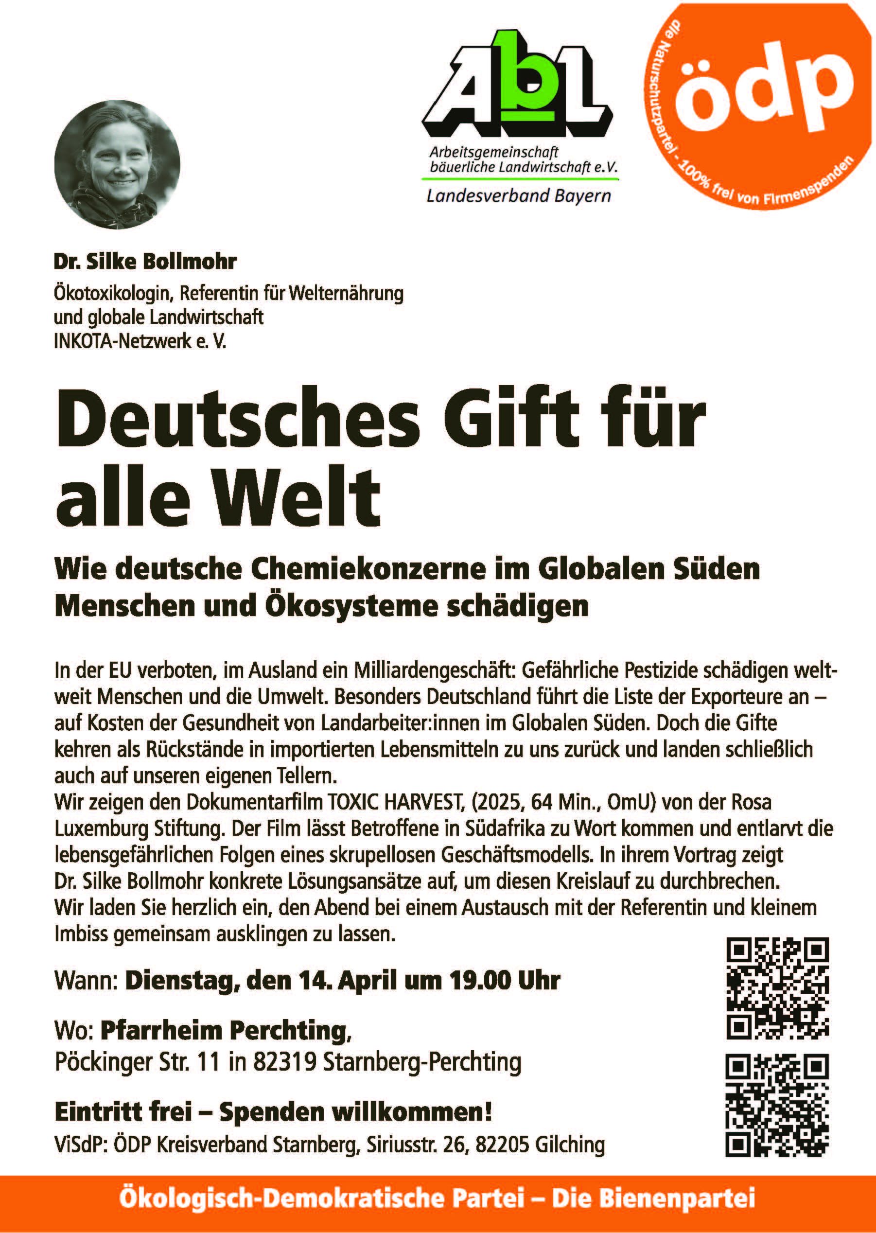 Referentin: Dr. Silke Bollmohr, Ökotoxikologin, Referentin für Welternährung und globale Landwirtschaft beim INKOTA-Netzwerk e. V.